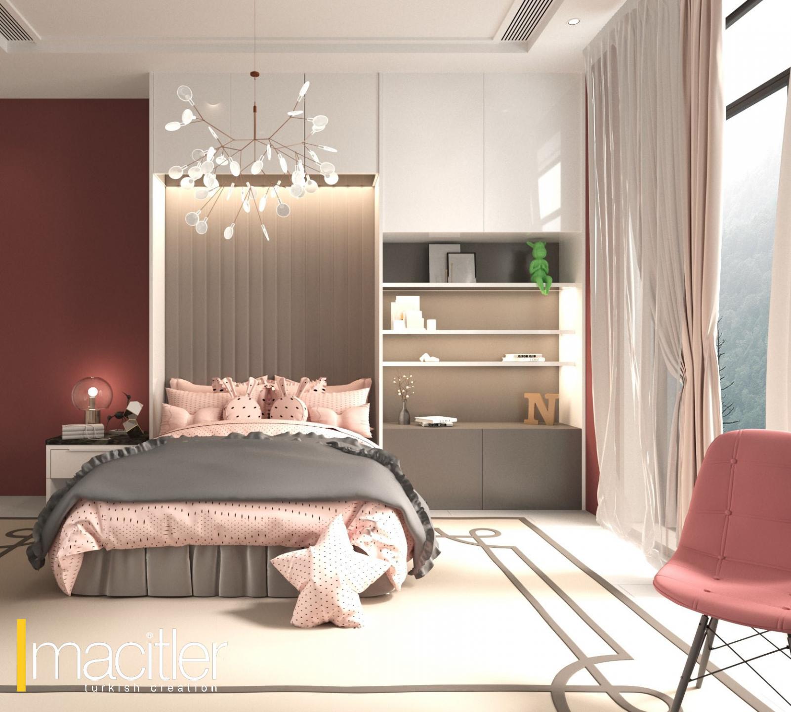 Bu projede, pastel tonların ve yumuşak renk geçişlerinin hâkim olduğu bir tasarım dili benimsendi. Modern mobilya formları ile genç kızların hayal dünyasına hitap eden estetik detaylar bir araya getirilerek hem sıcak hem de şık bir yaşam alanı oluşturuldu.