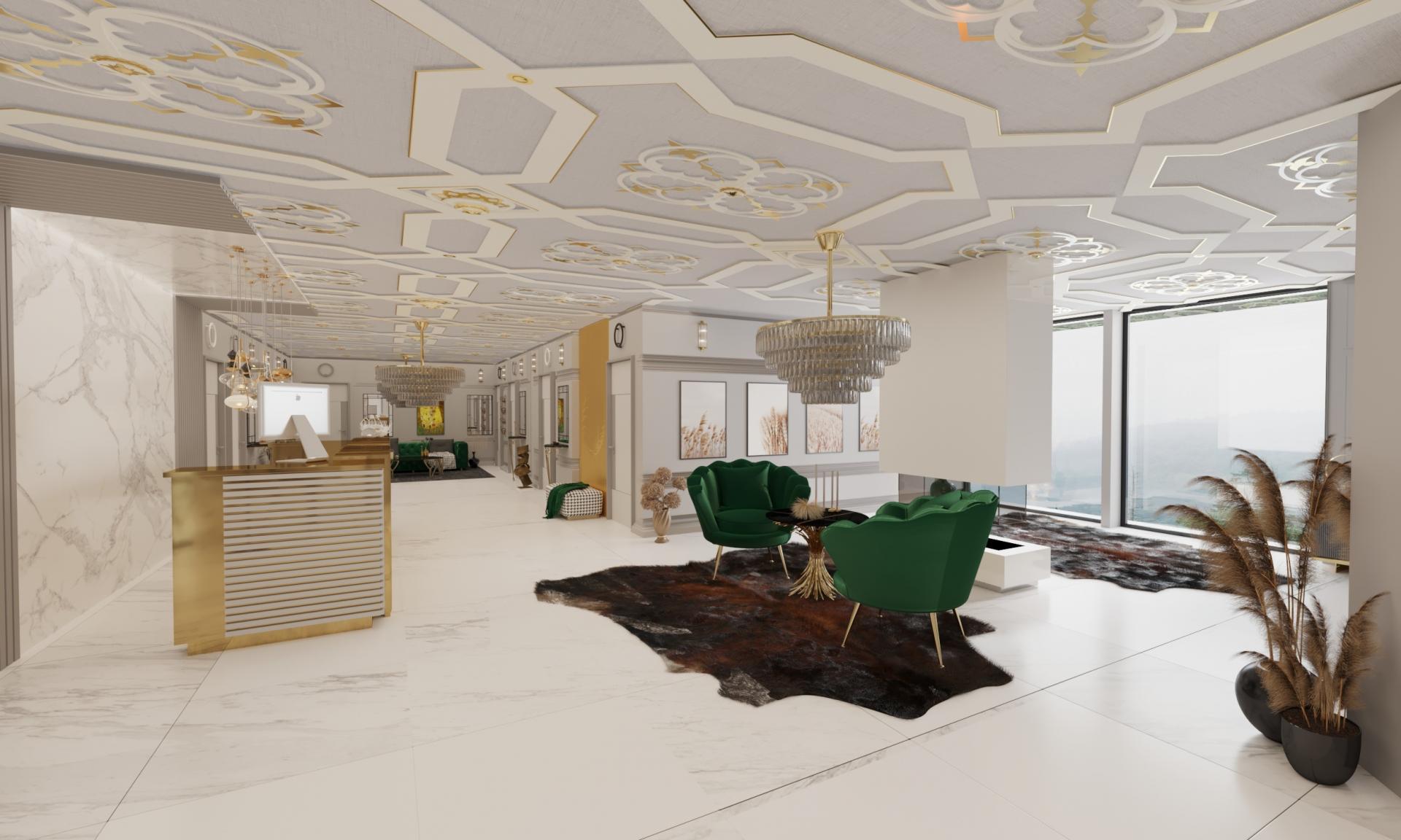 Bekleme alanları, danışma bölümleri, uygulama odaları ve sosyal alanlar; modern çizgiler, doğal renk paletleri ve sıcak dokularla tasarlanarak hem huzurlu hem de profesyonel bir atmosfer sağlanmıştır.