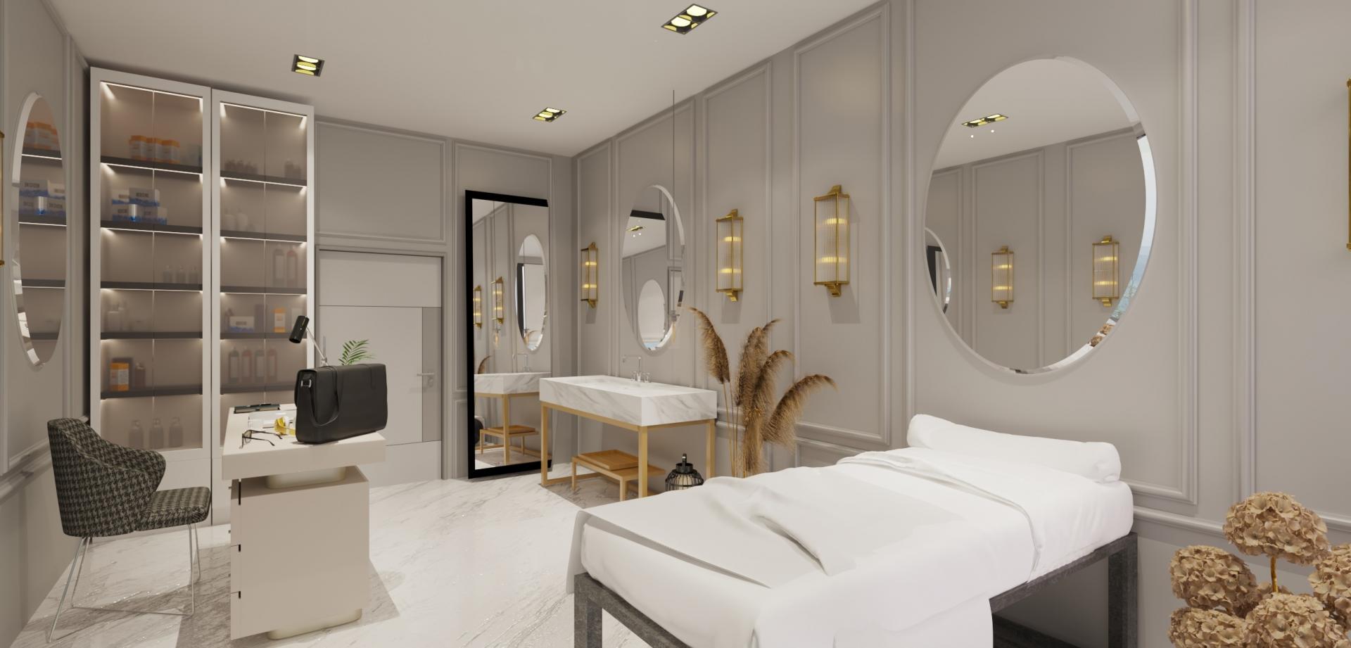Güzellik ve estetik merkezlerinde, ilk izlenimi güçlendirmek ve müşterilere konforlu bir deneyim sunmak için tasarımda zarafet ve işlevsellik dengesi kurulmuştur.