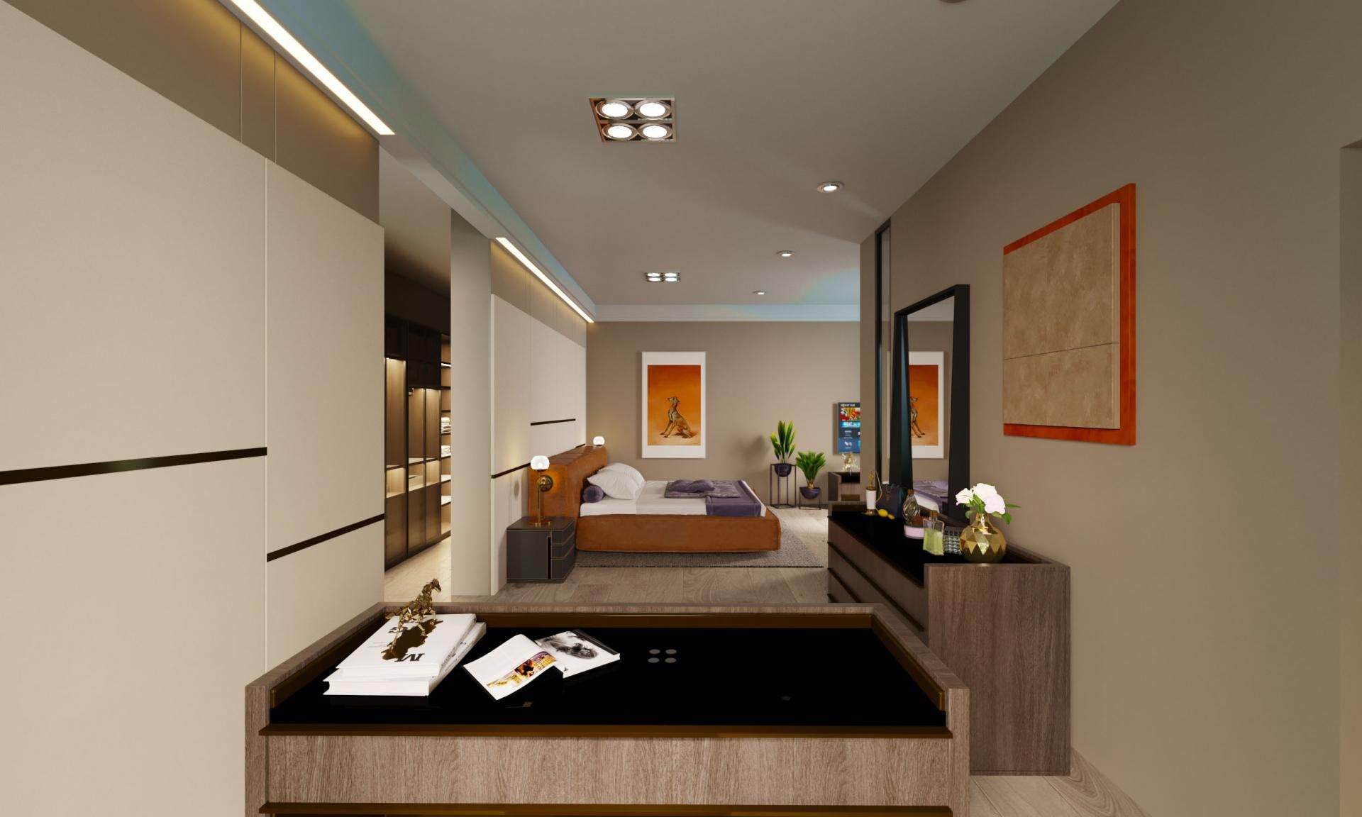 Arabistan Yatak Odası Projemizde; doğal tonlar, yumuşak dokulu kumaşlar ve modern çizgiler ön planda tutuldu. Yatak başlığından dolap sistemine kadar her detayda, estetik görünüm ve kullanım kolaylığı hedeflendi. Açık renklerin ferahlatıcı etkisi, alanı daha geniş ve aydınlık hale getirerek dinlendirici bir atmosfer oluşturdu.