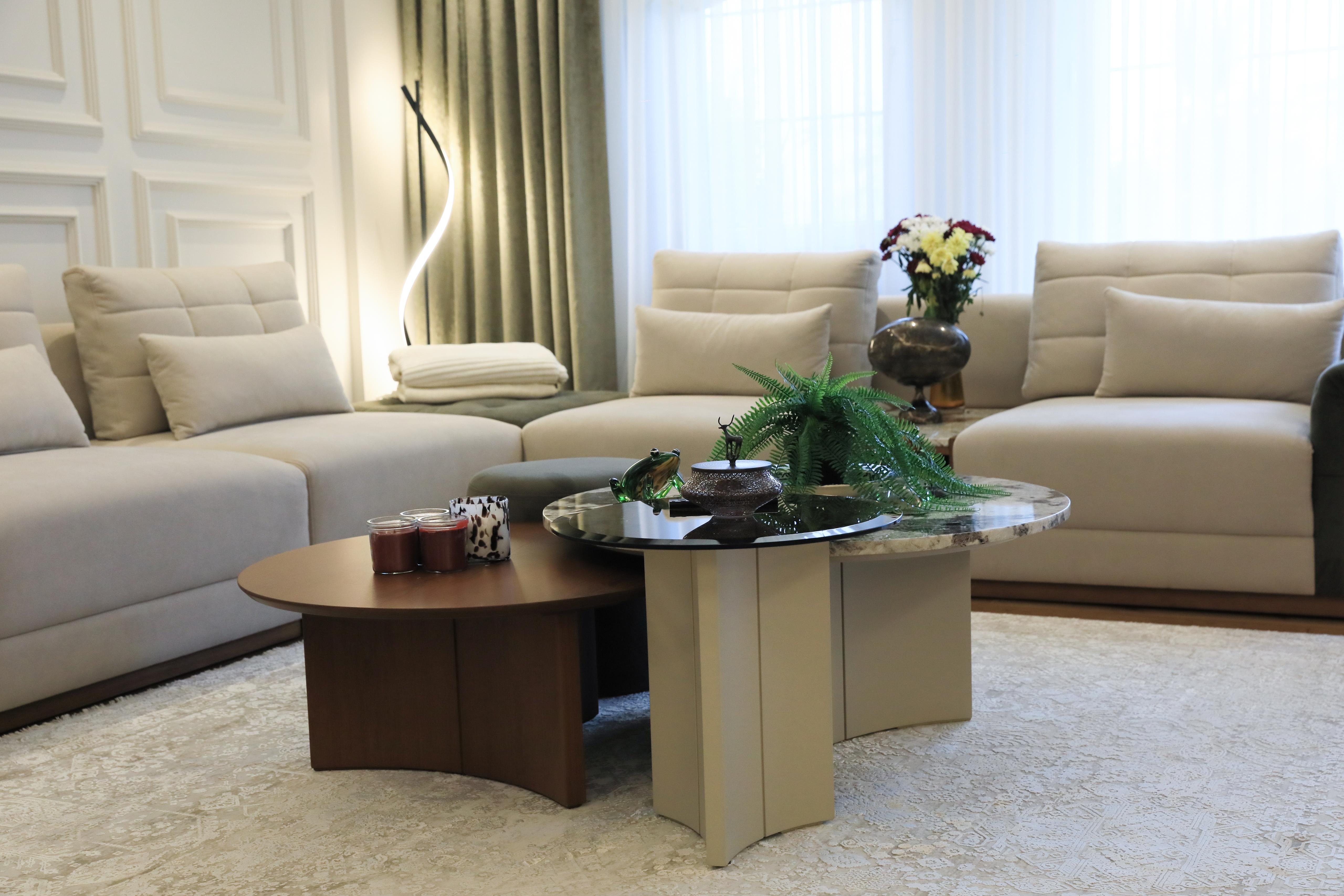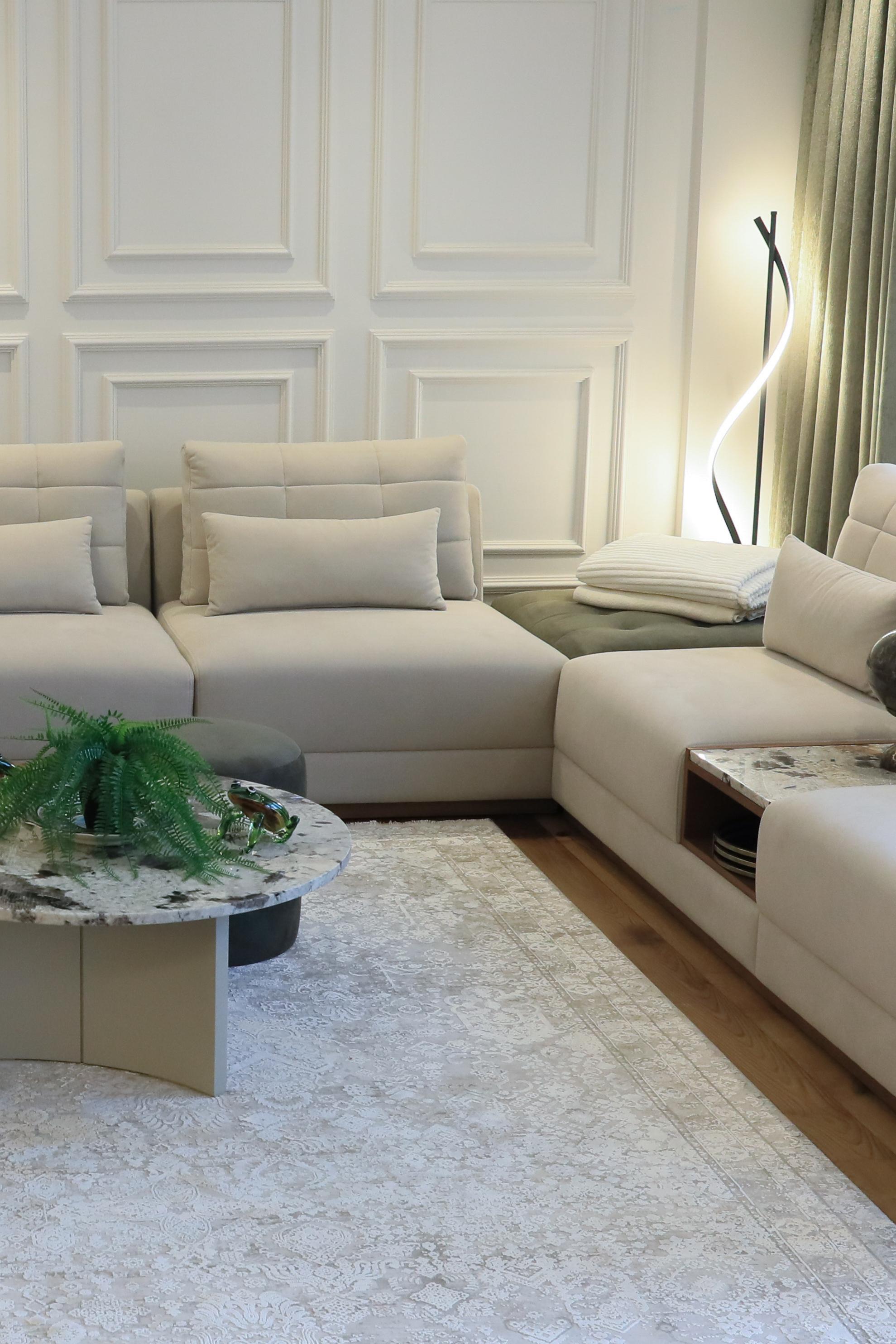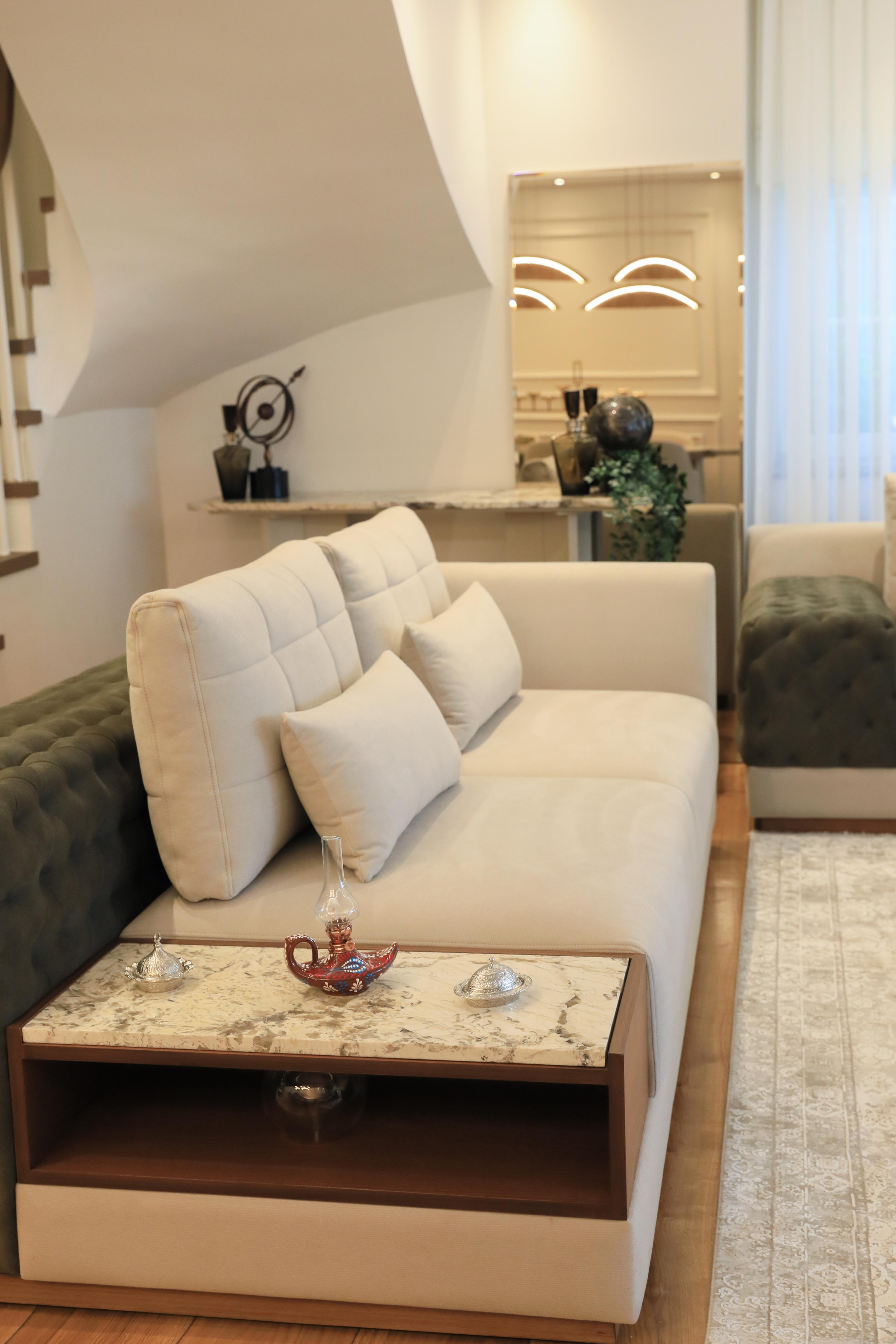 from here.As Macitler Furniture, we have brought to life theIstanbul Çekmeköy Elysium Garden Villa Project, offering a special living space that combines modern lines with functionality. The furniture used in the interiors of the villas stands out with its elegant designs and high functionality. The cream tones preferred in the seating groups create a spacious and peaceful atmosphere in the space, while the integrated coffee table units with marble details provide both an aesthetic emphasis and a practical storage solution. The coffee tables create a stylish coherence at the center of the living room with their glass and natural stone surfaces.