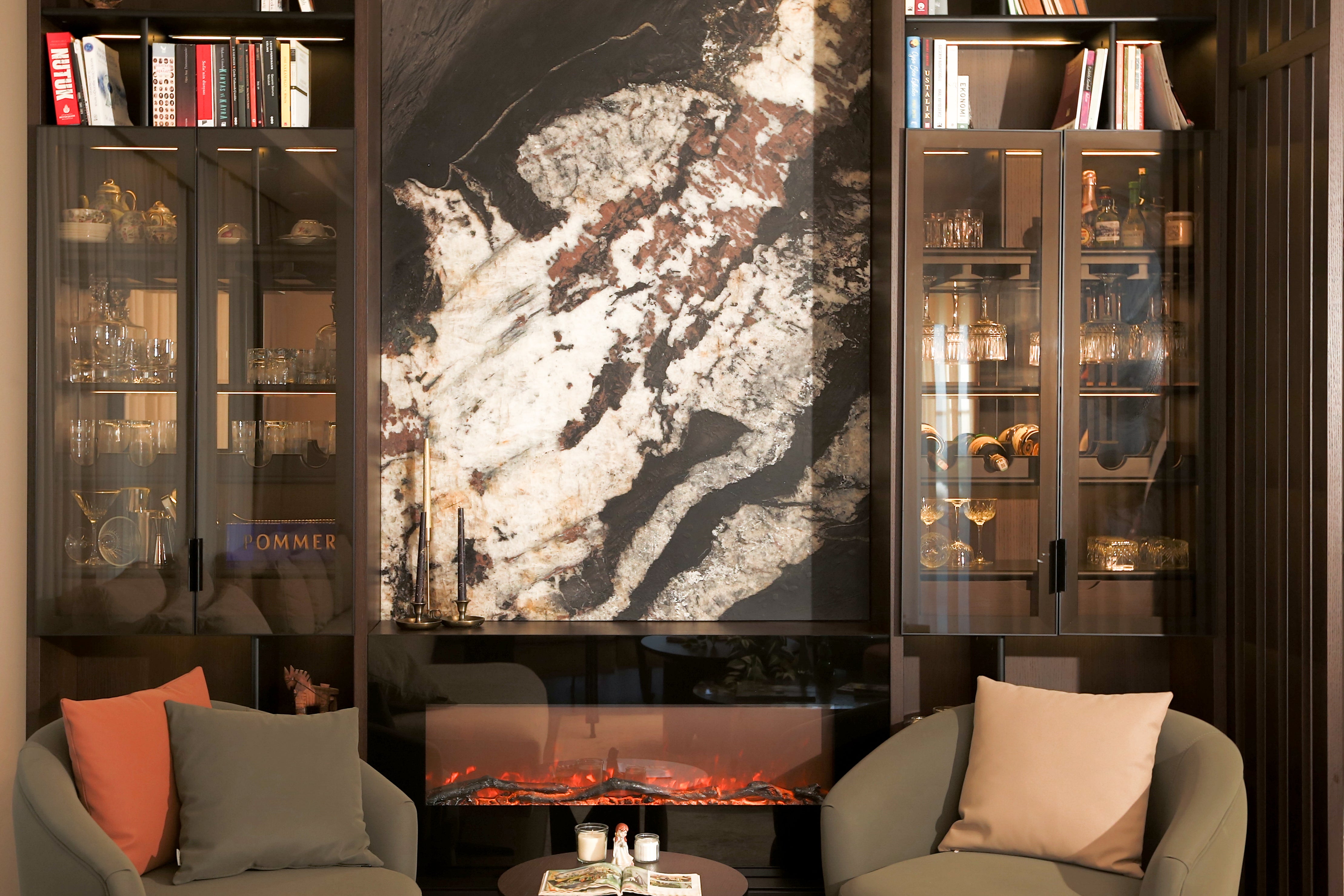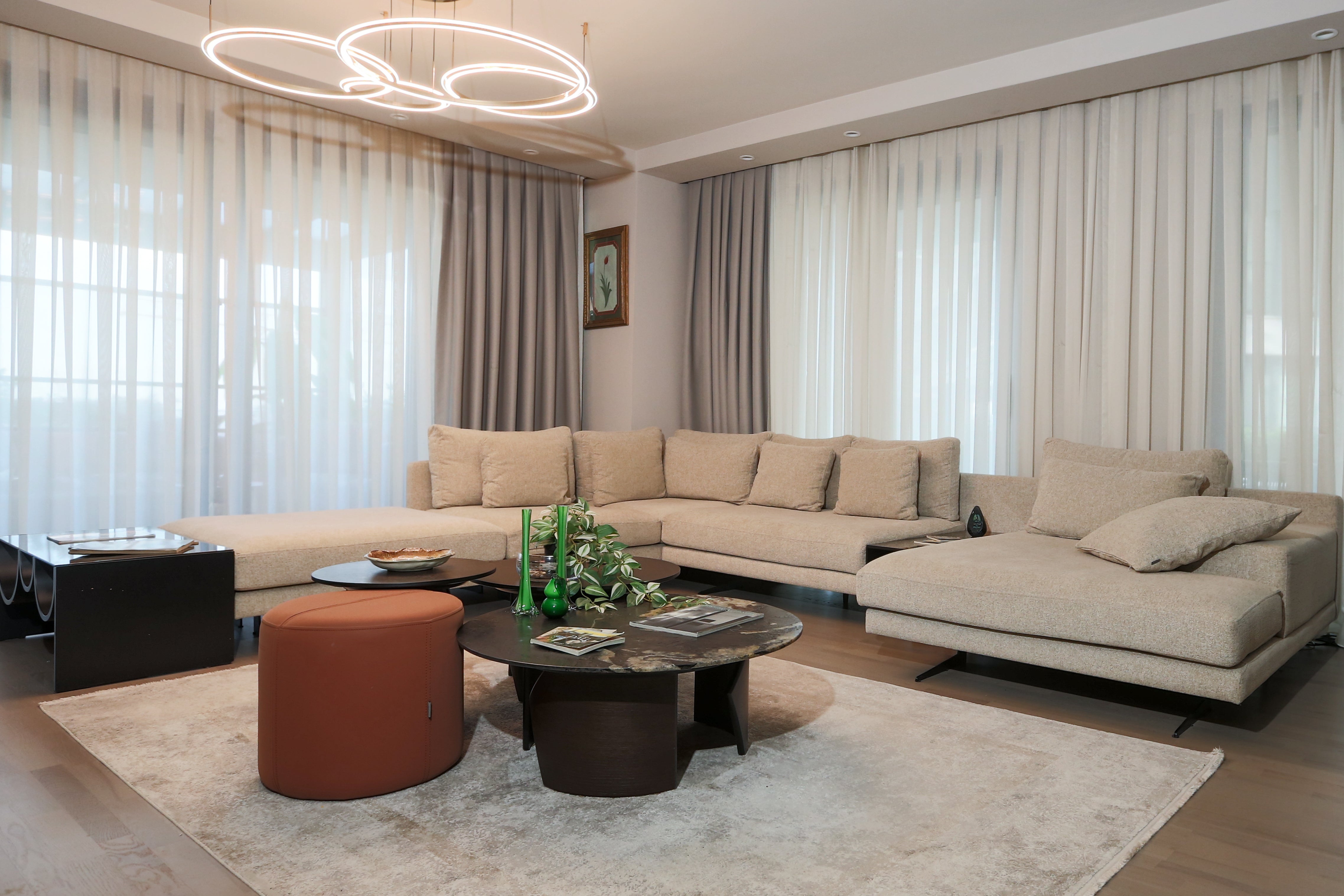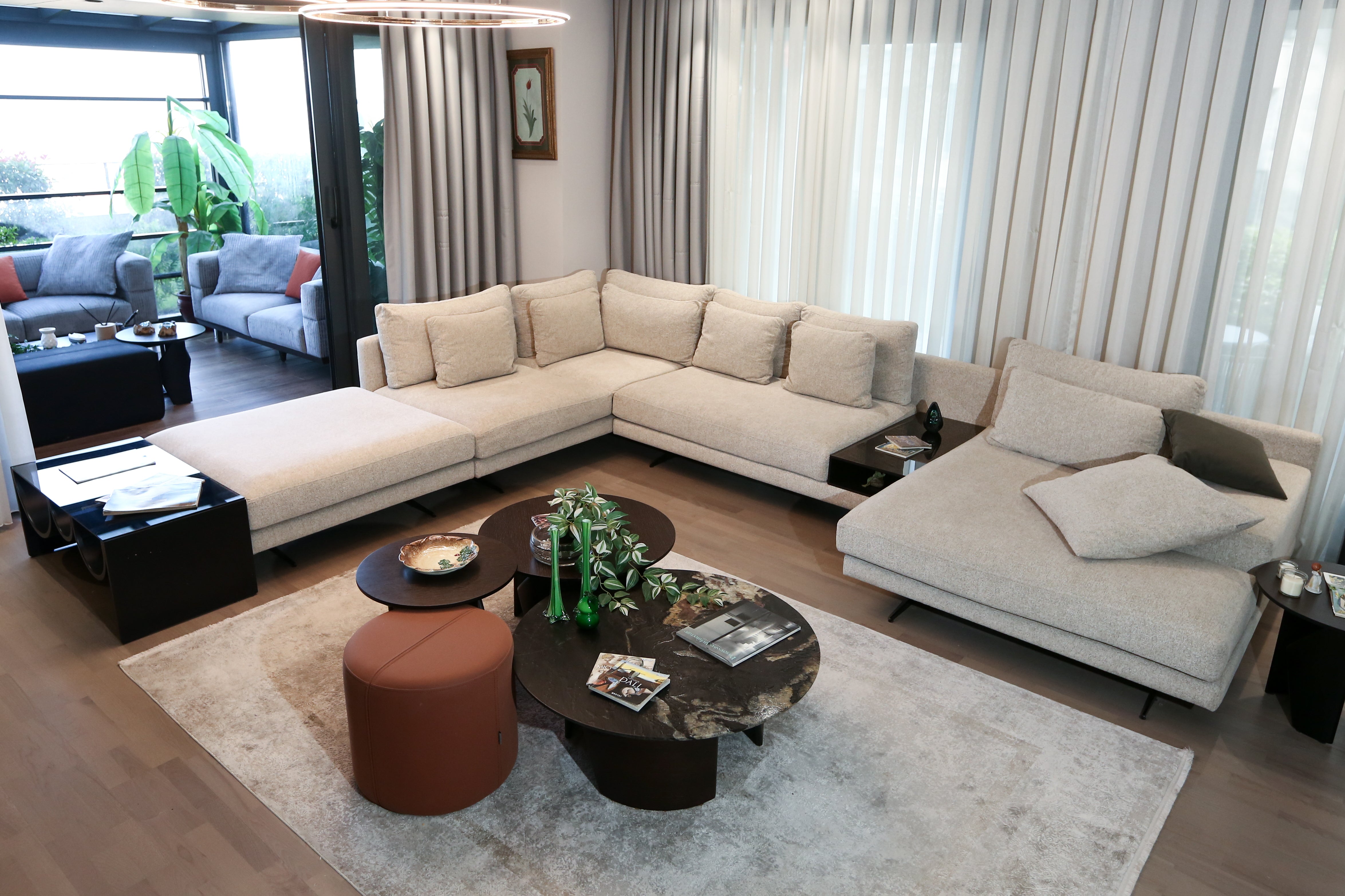 In loungesPetra Koltuk TakımıwithAntalya Corner Sofaits modern and comfortable seating, added comfort to the living space,Ivriz Coffee Table Set ve Hagia Sophia Armchairstood out as details that complete elegance. TheIvriz TV Unitin the television area