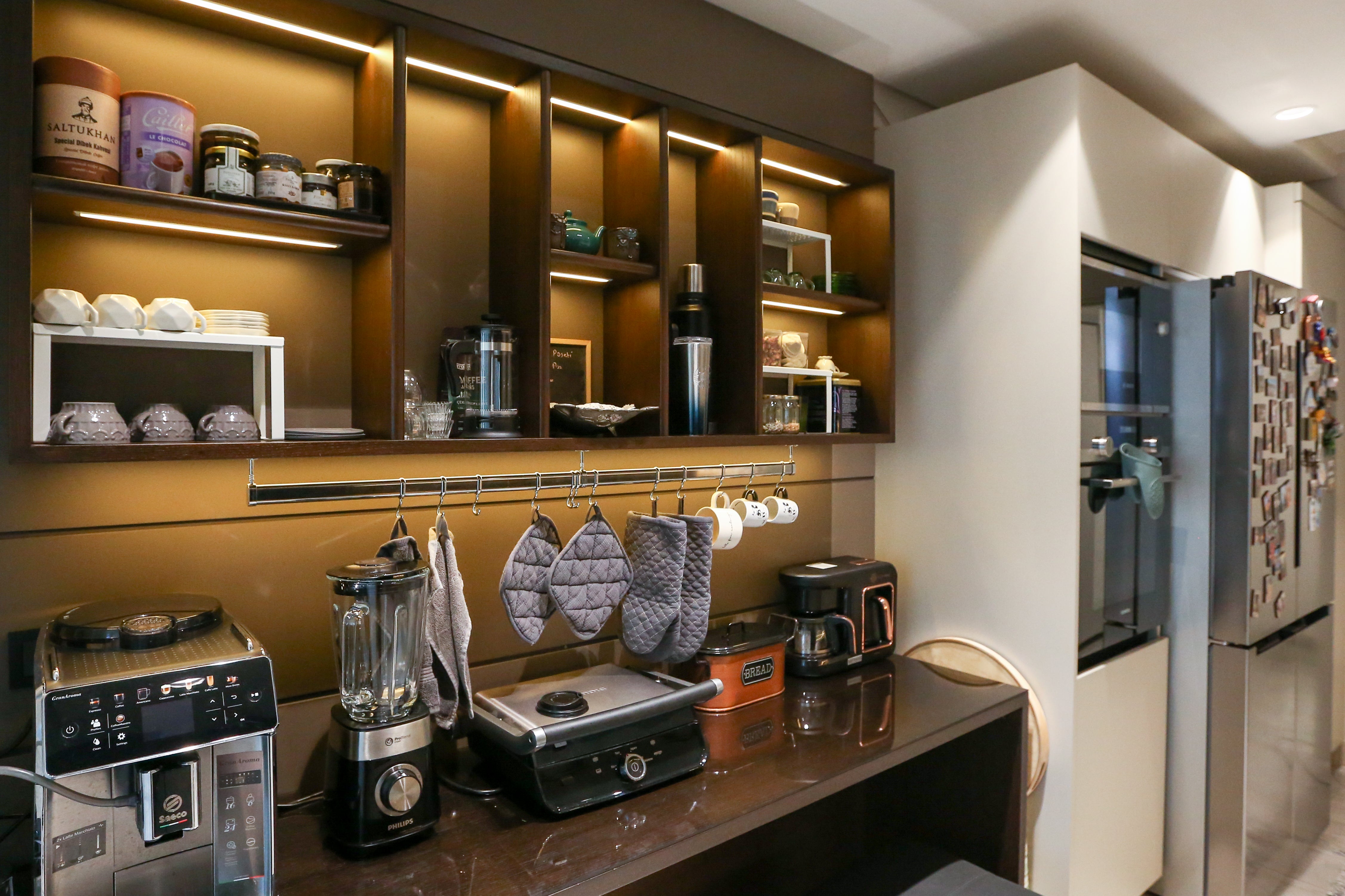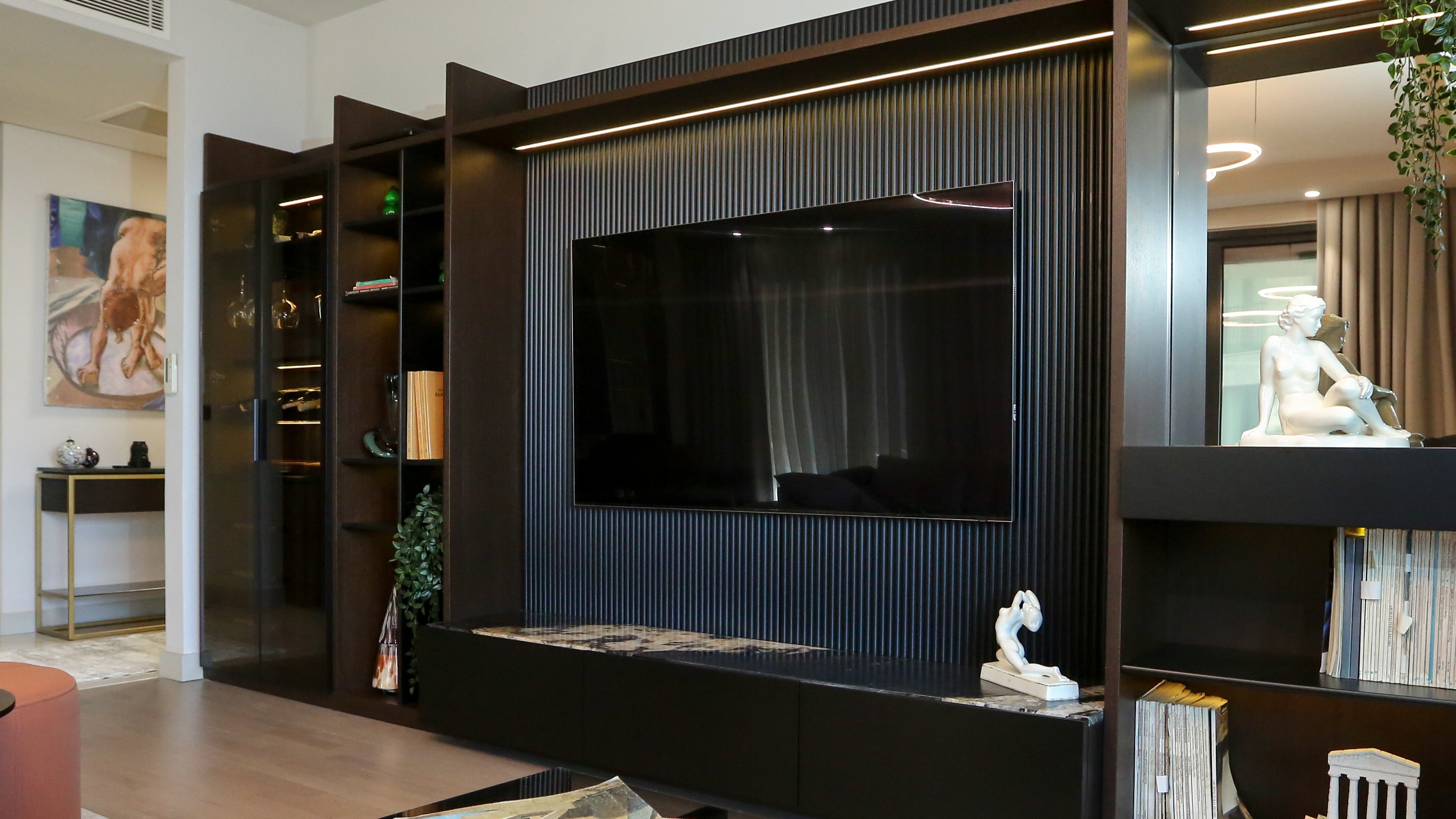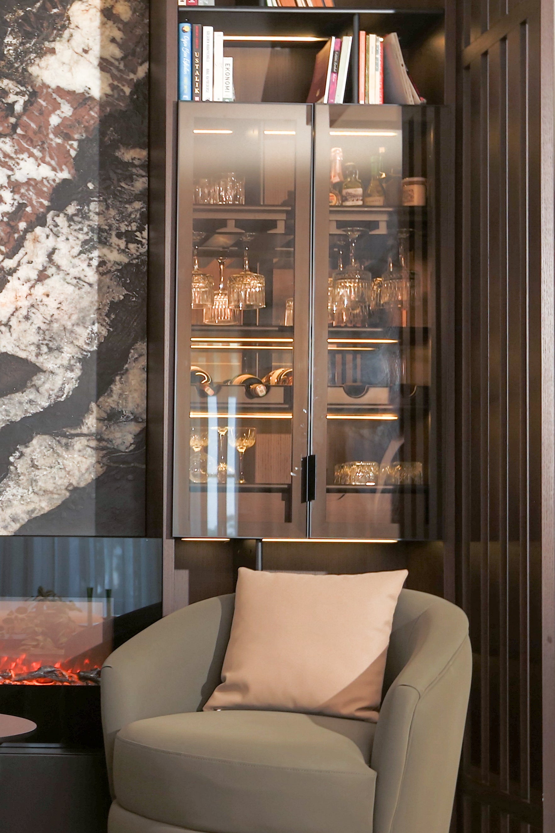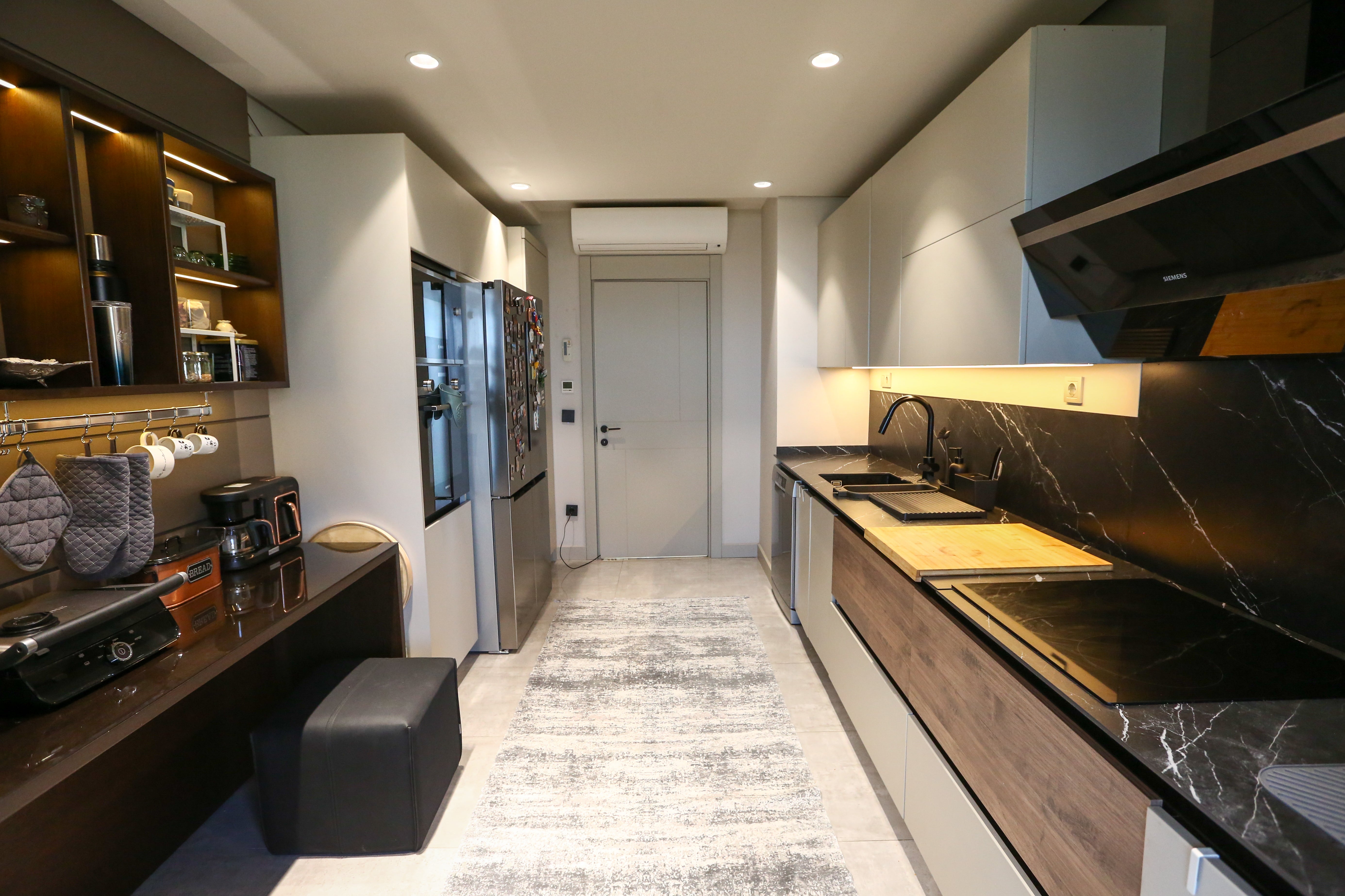 In loungesPetra Koltuk TakımıwithAntalya Corner Sofaits modern and comfortable seating, added comfort to the living space,Ivriz Coffee Table Set ve Hagia Sophia Armchairstood out as details that complete elegance. TheIvriz TV Unitin the television area