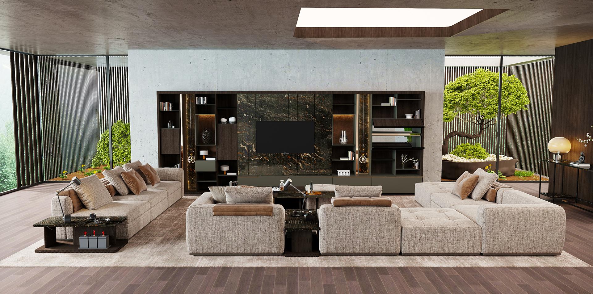 The harmony in the coffee table and pouf combinations creates a captivating atmosphere in your living room, while the marble patterns reminiscent of the night stars highlight the elegant details of the Hatila Set. The Hatila Sofa Set combines naturalness with a modern interpretation, adding a warm touch to your living space.