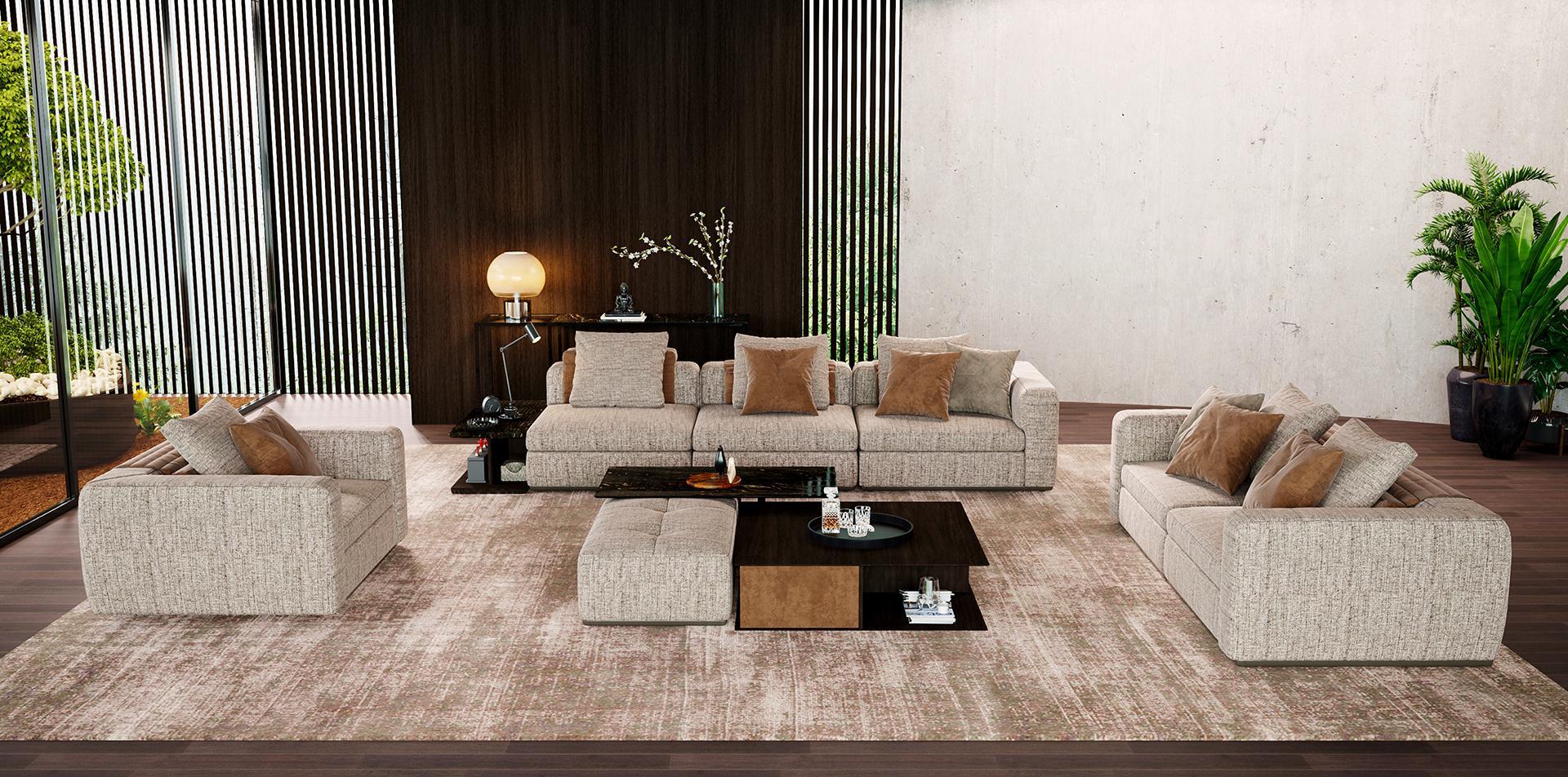 The Hatila Sofa Set brings the peace of nature and its unique beauties to your home. Inspired by the unique textures gained by the changing seasons of the Hatila Valley, this collection offers comfort and aesthetics together. With its unique fabric and color options, it adds elegance to every moment with its poufs that invite you to dream and complementary coffee table details.