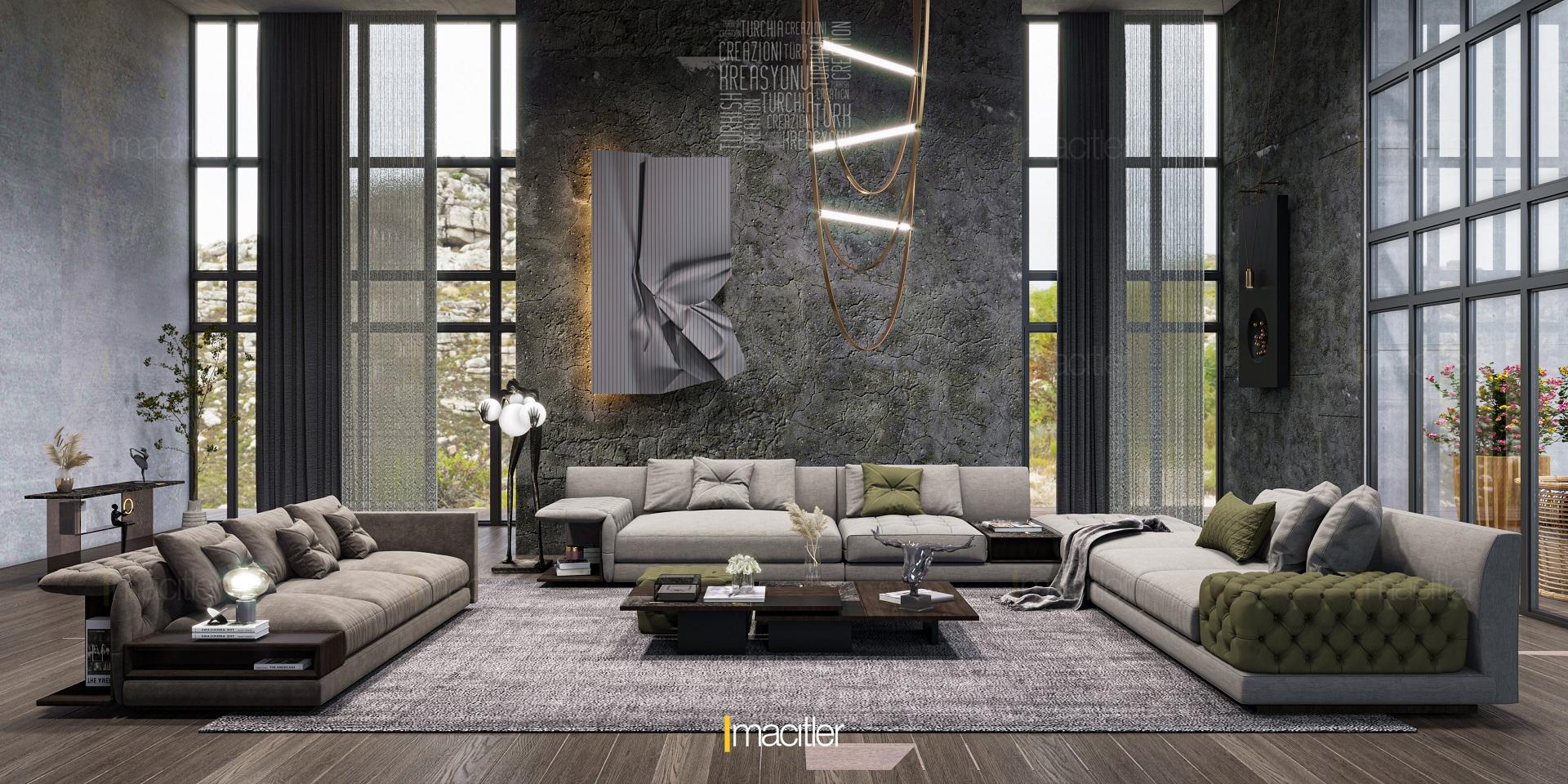 The Yason Sofa Set has a unique design where modern lines meet elegant details. This sofa set adds a sophisticated atmosphere to your living spaces with its sleek lines, offering a simple and impressive appearance.