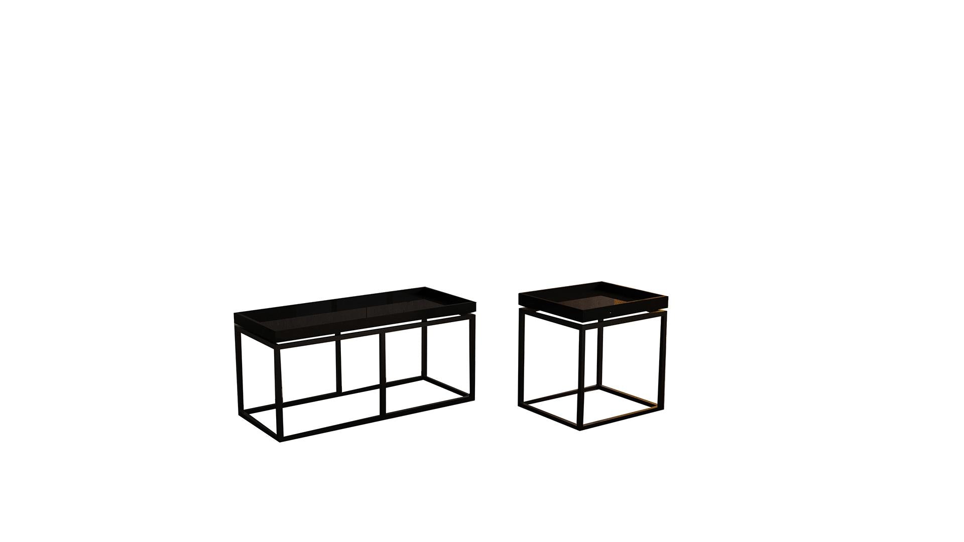 The SH1018-1019 Coffee Table Set features an elegant design that beautifies modern living spaces with simple and functional details. Its metal frame provides strength and stability, while the dark color tones on the top surface add a sophisticated atmosphere to the space. The minimalist lines have been specially designed to enhance the elegance of interiors.