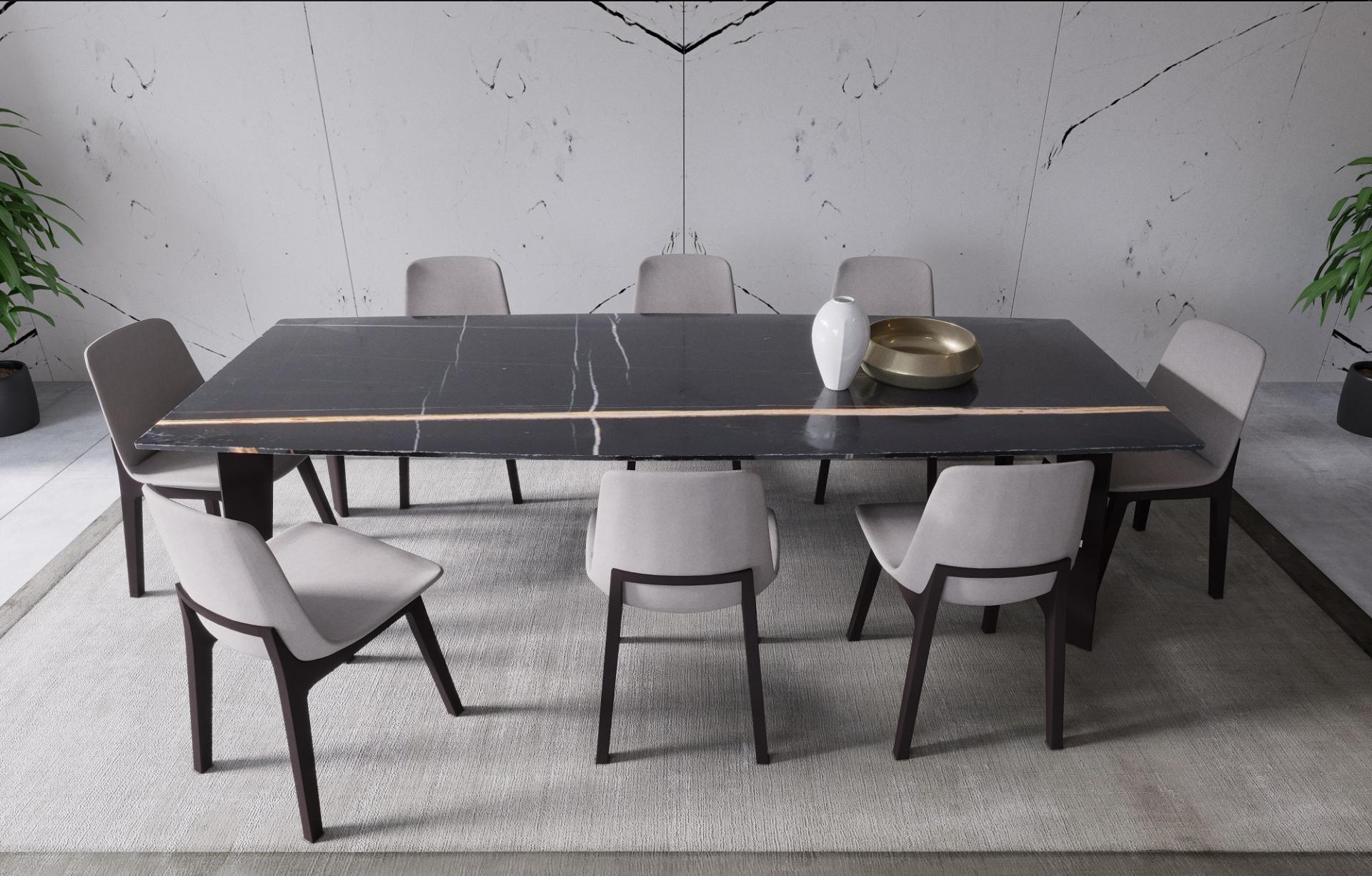 Aspendos Dining Room combines aesthetics and elegance with modern touches, adding a unique atmosphere to your dining areas. Designed with a marble top and meticulously crafted details, Aspendos transforms every dining invitation into a magnificent feast. The perfect balance between durability and aesthetics makes this collection unique.