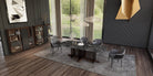 Yason Yemek Takımı, doğayla uyumlu renk paleti ve çağdaş form diliyle yemek alanlarında estetik bir bütünlük yaratır. Takımın merkezinde yer alan oval formlu masa, doğal taş dokulu cam yüzeyiyle hem görsel zenginlik sunar hem de kullanım kolaylığı sağlar. Yason’un zarif masası, minimal siyah cam ayakları ve ceviz detaylı taban yapısıyla mekâna derinlik katar.